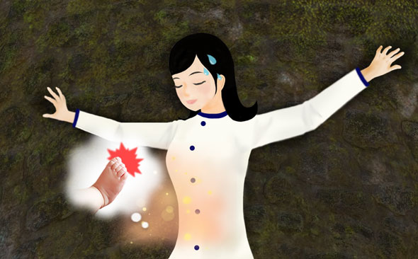 이 일은 결코 쉽지 않았다. 아니 불가능에 가까운 무모한 일이었지만 내 사랑을 다해 잘 해보려고 굳게 결심했다. 그토록 어렵게 우물 아래로 내려가 바닥에 겨우 발을 디뎠다. 그런데 그 순간 내 몸이 진흙 속으로 쑤욱 빨려 들어가는 것이 아닌가! 순식간의 일에 나는 너무나 놀라 “어어~어어어~윽? 아가야 미안해! 아가야 미안해!”하고 소리쳤다.